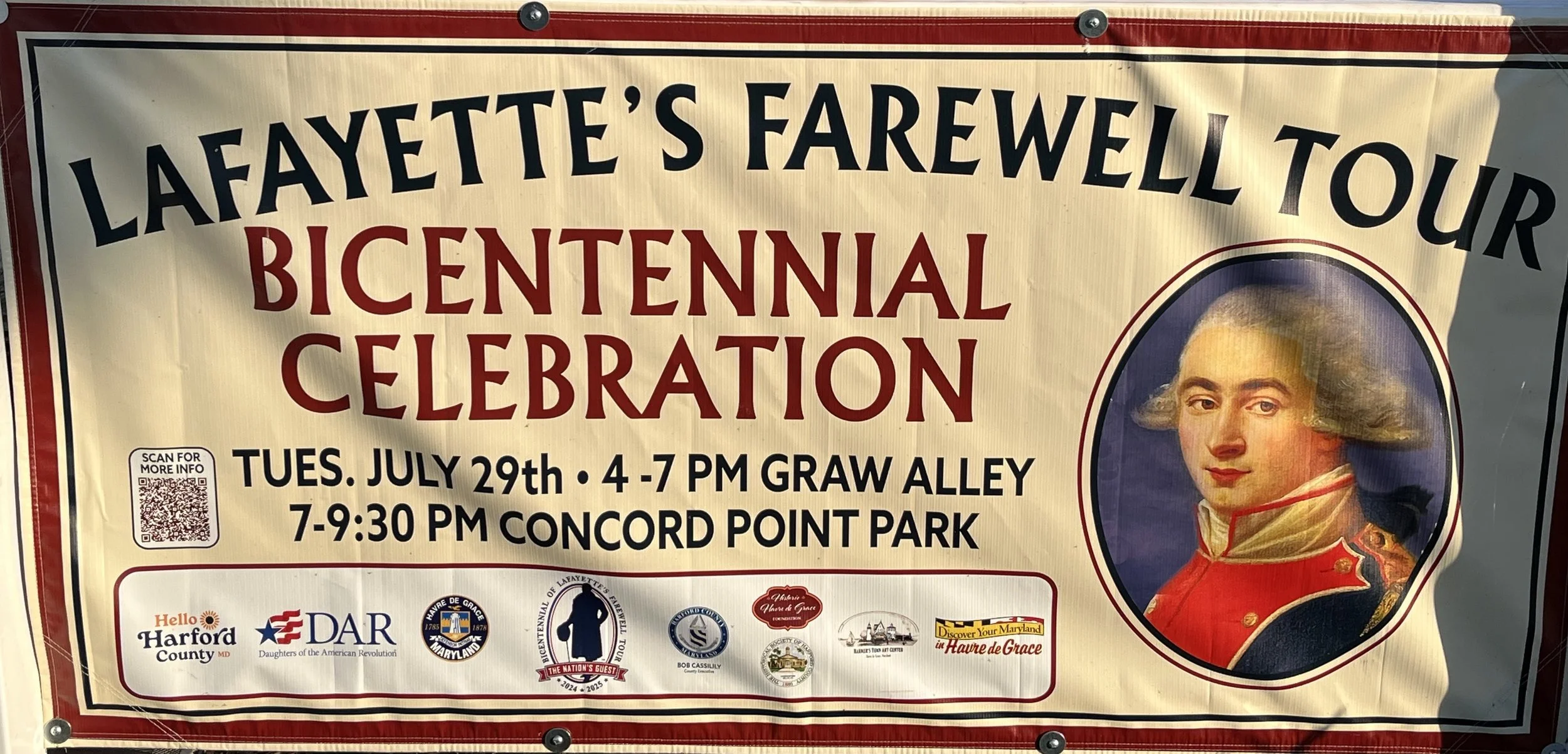 We traveled to Havre de Grace, Maryland to participate in their Bicentennial Celebration of Lafayette’s Farewell Tour. Lafayette returned here for a second time on July 29, 1825 as part of that farewell tour. This is truly Lafayette country—the town name was even inspired by him!